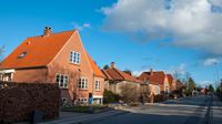Hyggelig brostensvej med små huse
